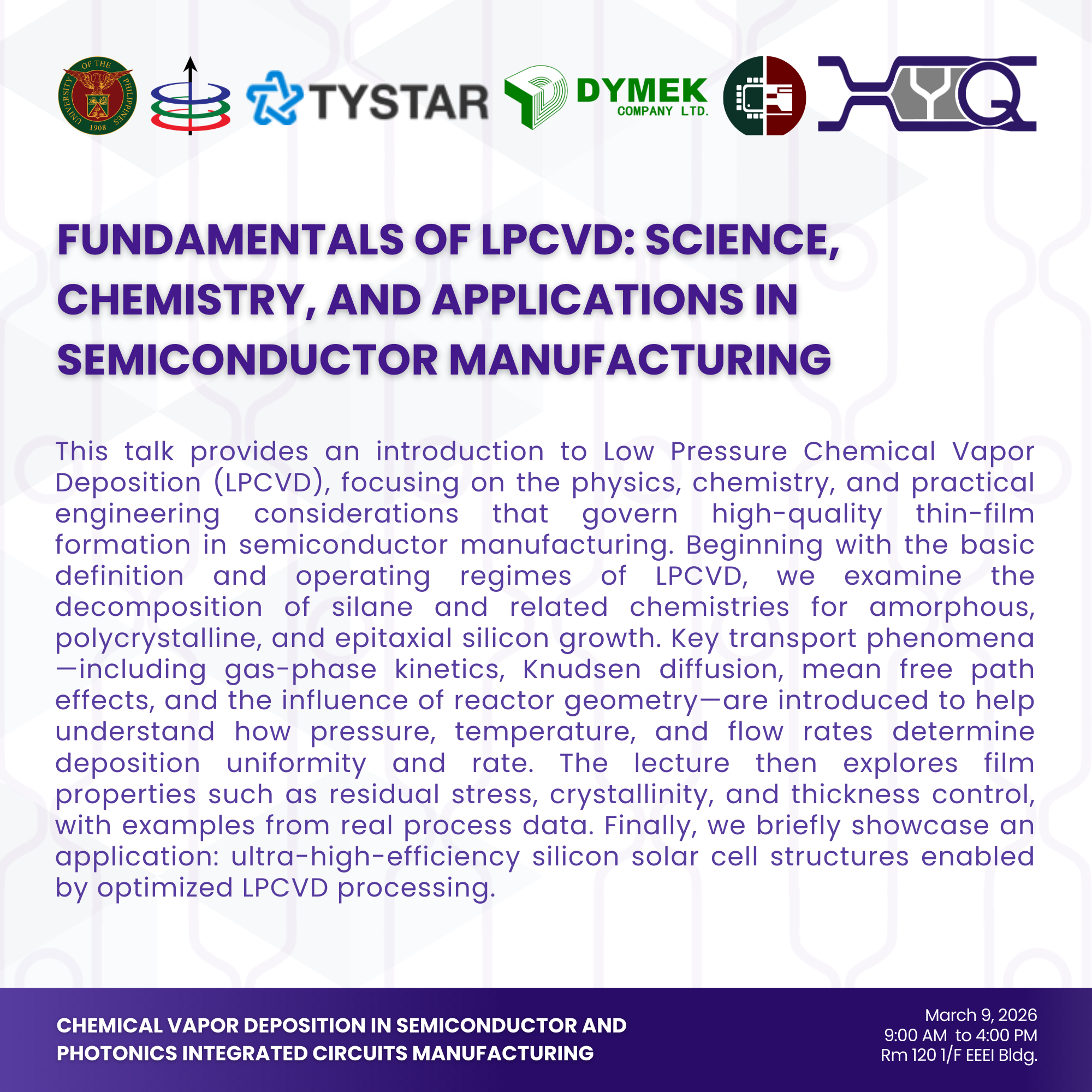 These lectures are in high demand worldwide, benefiting both graduate students and professionals in semiconductor device design and manufacturing. Attendees consistently report that the series helps reduce costly trial and error by offering a solid foundation in LPCVD fundamentals and practical guidance on process recipe development.